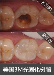 祛除龋坏组织后被动,进行补牙材料填充,恢复形态与功能。
